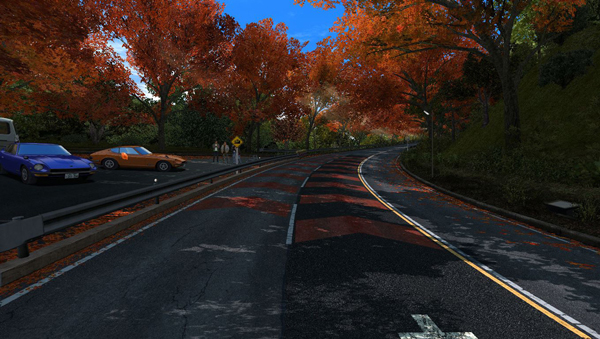 実は元々海外専用コースとして海外版マキシ5リリース時に実装されていた。 - 上りの山頂辺りに駐車場が見えるが、そこに止まっているのはある峠コミックで大活躍した2台である。