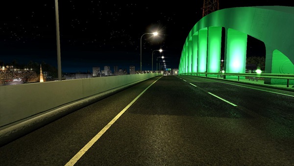 緑色にライトアップされた宇品大橋は、3号線区間の象徴。