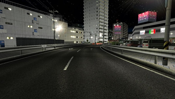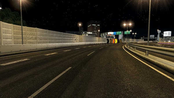 頑張れば右側にも抜けられるが、300Km/h付近でブラインドに飛び込むことになるのでご注意を(曲がりきれずにレーンの柱に刺さる可能性が高い)。