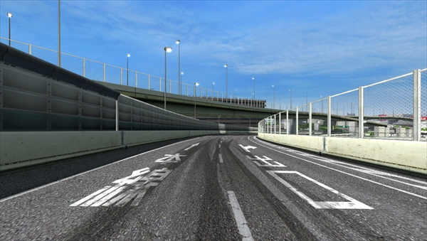 巨大な橋脚を貫く直線は、自分の車の最大のパワーで一気に駆け抜けよう。