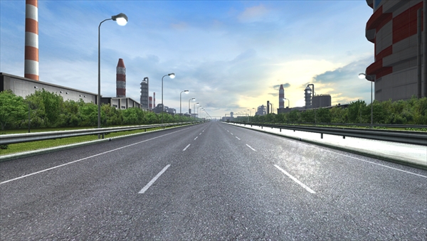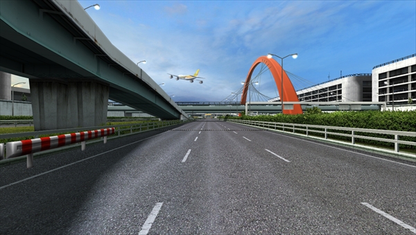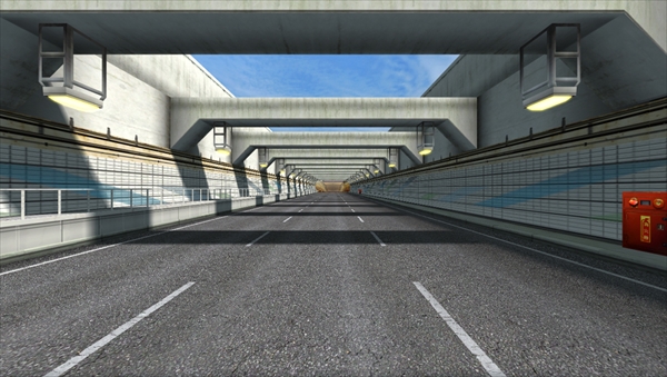 周囲には巨大建造物が多く、3車線で広々とした開放感あふれるコース。