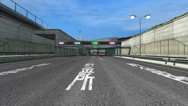 空港トンネル手前の、3車線のゆるやかなバンクコーナー。